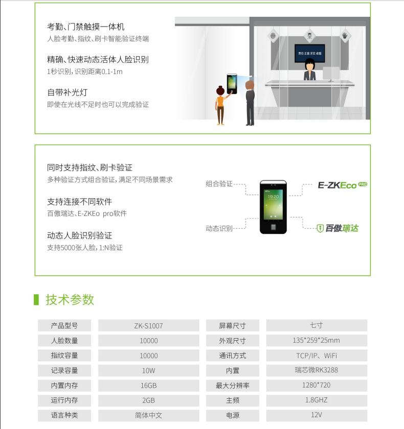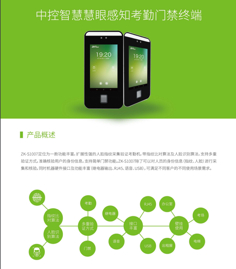 | 產(chǎn)品名稱 | ZK-S1007慧眼感知考勤門禁終端 | ||