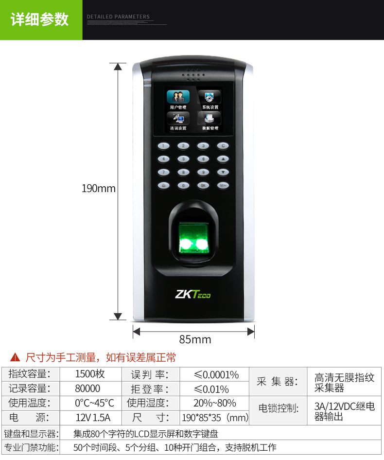 • 產(chǎn)品描述:ZKTECO熵基指紋門禁中控F7安防中控F7、中控智慧是中國時間管理、安全管理、身份識別系統(tǒng)解決方案領(lǐng)袖級企業(yè),是全球著名的生物識別產(chǎn)品、解決方案及服務(wù)提供商